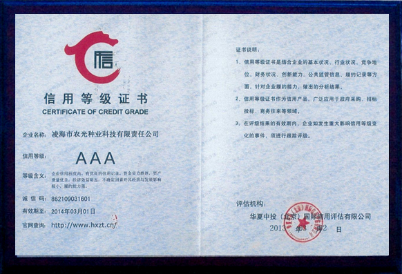 | 凌海市農(nóng)光種業(yè)科技有限責(zé)任公司是由遼寧省種子管理局和凌海市人民政府批準(zhǔn),集科研、生產(chǎn)、試驗(yàn)示范、經(jīng)營為一體的種子企業(yè)。 公司擁有種子繁育基地3萬畝,年產(chǎn)種子1200萬公斤左右。自成立以來在農(nóng)業(yè)部及遼寧省歷次花期檢驗(yàn)中,所生產(chǎn)的種子質(zhì)量合格,擁有良好的儲(chǔ)備、晾曬和機(jī)械加工設(shè)備,為了提高種子質(zhì)量,2015年新購置種子脫粒機(jī)、清選機(jī)、烘干機(jī)以及電腦包裝機(jī)等整套加工設(shè)備,擁有經(jīng)省技術(shù)監(jiān)督局認(rèn)證的“標(biāo)準(zhǔn)化檢驗(yàn)室”,投資20萬元購買人工氣候室、土壤測(cè)試儀、低溫低濕冷藏箱等各種檢驗(yàn)設(shè)備。公司重視種子科研工作,現(xiàn)有科研育種實(shí)驗(yàn)基地100畝,科研上以自主研發(fā)為主,同時(shí)與多家科研單位合作育種,每年繁、育、測(cè)交材料2000多份,現(xiàn)以推出五個(gè)組合參加錦州區(qū)域試種,其中“農(nóng)光3號(hào)、農(nóng)光4號(hào)”在錦州地區(qū)試驗(yàn)中產(chǎn)量居首位。2006年公司買斷的連玉16玉米品種已通過5個(gè)省市的審認(rèn)定,具有適應(yīng)性廣、抗逆性強(qiáng)、產(chǎn)量高的特點(diǎn),曾榮獲大連科技進(jìn)步一等獎(jiǎng),深受廣大農(nóng)戶的歡迎。2008年公司新選育的農(nóng)光4000玉米品種在市種子管理站新品種大區(qū)試驗(yàn)項(xiàng)目中。2012年公司買斷錦玉118品種權(quán),新品種的推廣與應(yīng)用為公司的發(fā)展提供了充足的動(dòng)力...... |